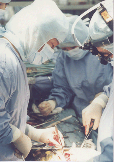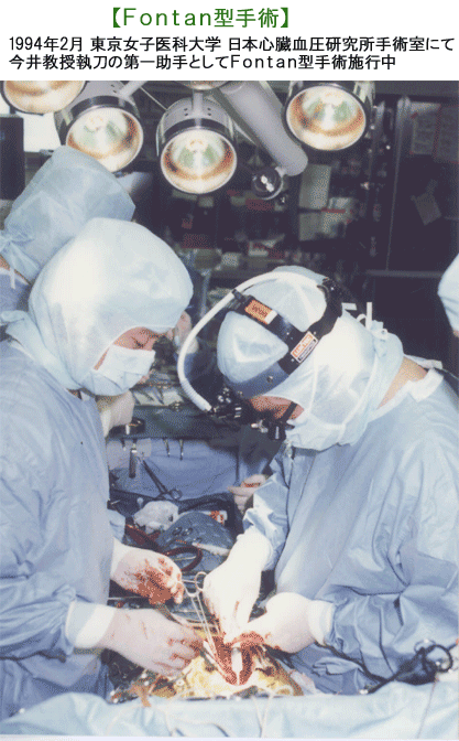 1994年2月 東京女子医科大学 日本心臓血圧研究所手術室にて今井教授執刀の第一助手としてFontan型手術施行中